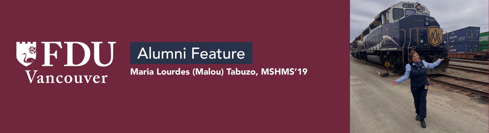 Maria began her professional journey with Rocky Mountaineer in 2019 after connecting with the employer through an FDU Vancouver’s job fair. Starting as a destination host, now known as a guest experience specialist, she has built a rewarding career in Canada’s tourism industry. She credits FDU Vancouver, her professors, and peers for providing the support and opportunities that helped shape her path and continues to pursue her passion in hospitality with gratitude and purpose.